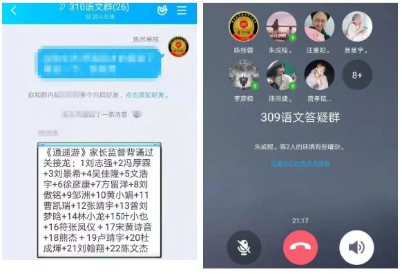 刘凤鸣老师组织学生每天通过语音打卡学习,每天晚上7:30—9:30是孩子们的梳理盘点、答疑解惑时间,他们会将自己学习清单、问题发给老师,老师灵活运用文字、语音、视频等多种方式予以解答。