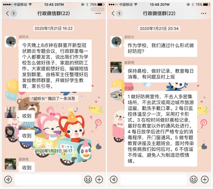 用群内接龙的方式确保人人知悉,向全体教师、学生、家长积极宣传有关疫情的科学信息和防控知识,教育引导家长保持健康稳定的心态,不传谣、不信谣、不造谣,不传播任何未经正式的信息,用理性认识+科学防护帮助师生家长树立起打赢防控疫情攻坚战的信心。