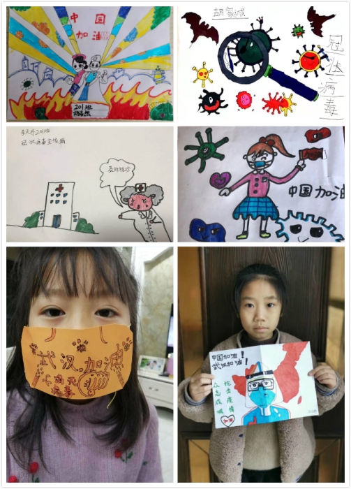向家长积极宣传有关疫情的科学信息和防控知识,用理性认识+科学防护帮助师生家长树立起打赢防控疫情攻坚战的信心。学生们也通过创作“抗击疫情”宣传漫画的、录制宣传视频的方式,为武汉同胞献祝福。