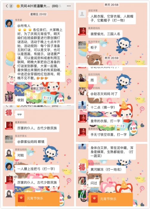 灯谜增添节日气氛,展现了古代劳动人民的聪明才智和对美好生活的向往。猜灯谜又称打灯谜,每逢农历正月十五,传统民间都要挂起彩灯,燃放焰火。后来有好事者把谜语写在纸条上,贴在五光十色的彩灯上供人猜。有吃有玩,才是节。不出门、不扎堆,在家里照样可以跟老师和同学们热热闹闹猜灯谜,还有红包惊喜等着你哦。