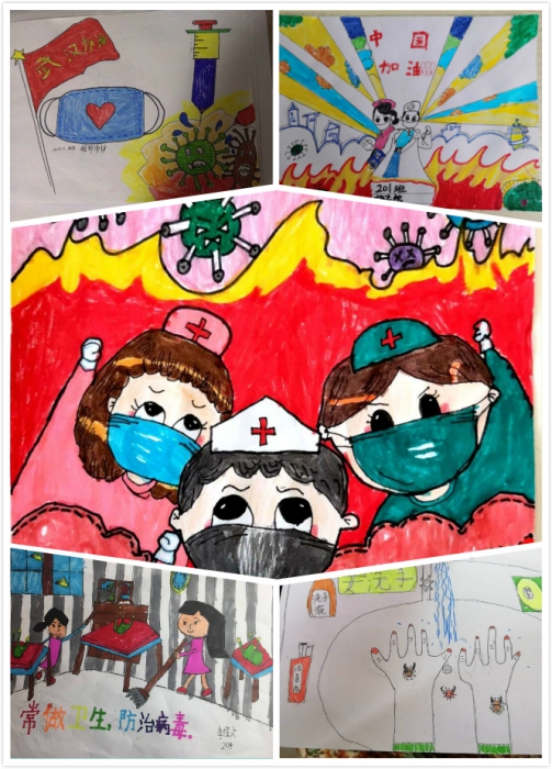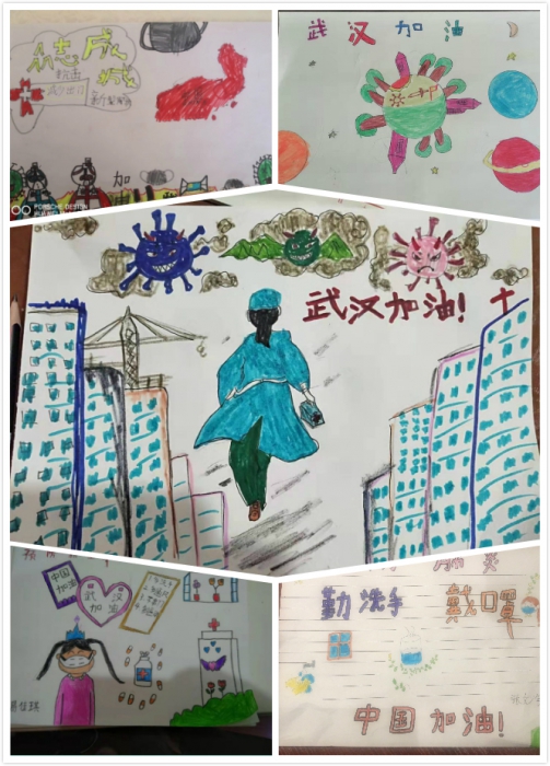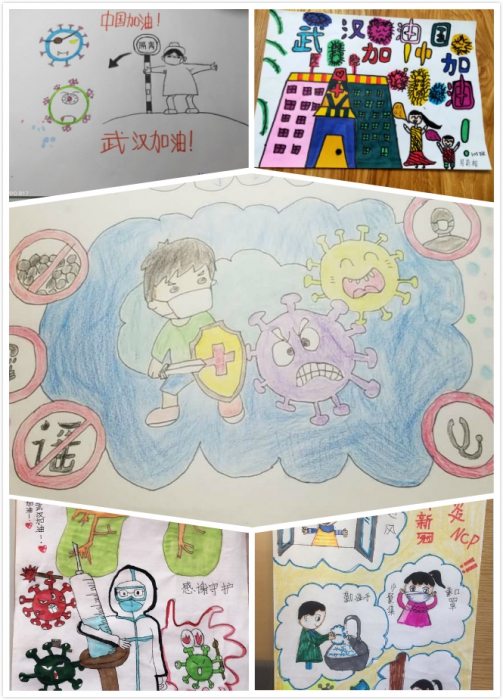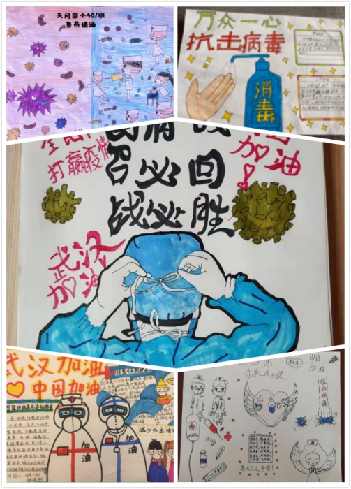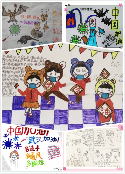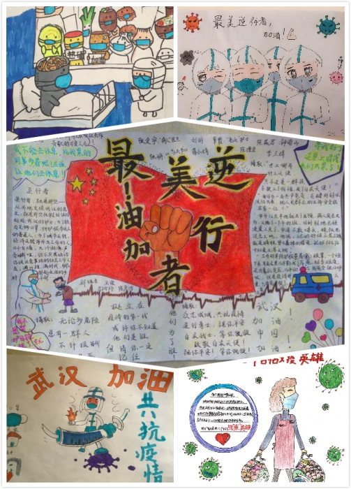 线上升旗仪式结束后,各班班主任在班级群里进行简单小结,鼓励孩子们共抗疫情,加油学习。同时,对周末实践作业进行分享,孩子们用自己的方式抗击疫情。