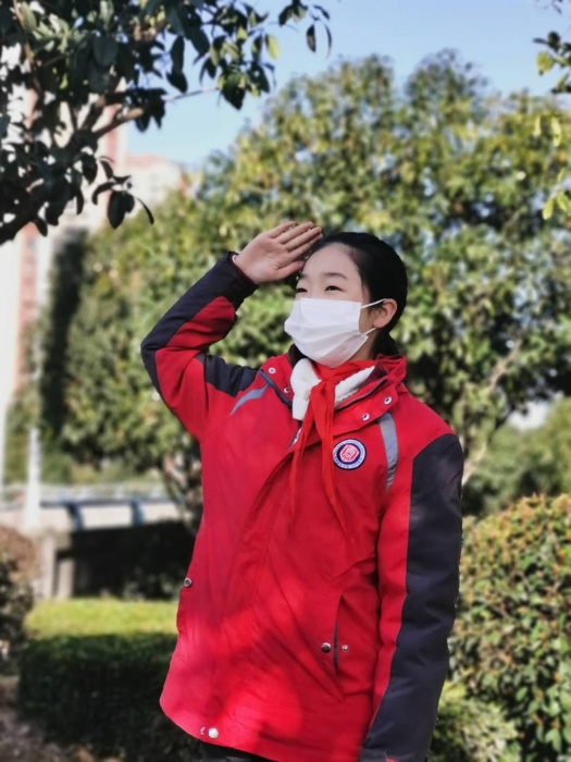 优秀少先队员代表603班杨佳欣同学作《众志成城抗疫情,少先队员在行动》为题的国旗下讲话。特殊的升旗仪式,一番暖心的引导凝聚了少先队员们的爱国之心。