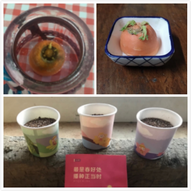 有的学生来到户外,拿着自己的工具,小心翼翼的把小树苗带到自己认为最适合小树苗生长的地方,挖坑、栽种、填土、浇水。有的学生在家里水培胡萝卜、播下希望的种子一步步的工序——孩子们用充满爱心和责任心的行动表达着他们对花草树木的爱护和祝福。