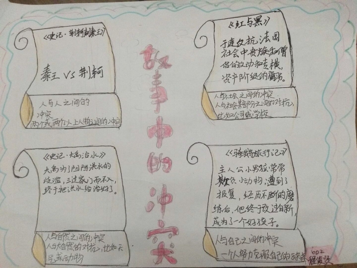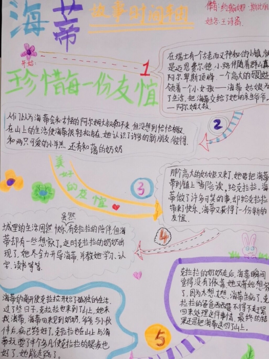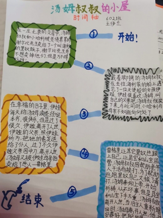 通过“画思维导图”“制作故事的时间轴”“寻找书本中的冲突”等任务,帮助学生在阅读的过程中锻炼分析、概括、总结的能力,梳通书本的场景和脉络,将书本读懂读薄。