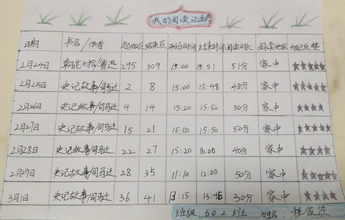 学生阅读记录表