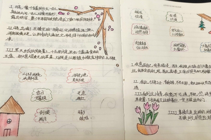 同时,在每天阅读的过程中,将自己喜欢的词语、句子进行了摘抄整理,写下当时的感想和感悟。不断更新自己的阅读体验,发现读书的乐趣,奠定丰富的语言基础。