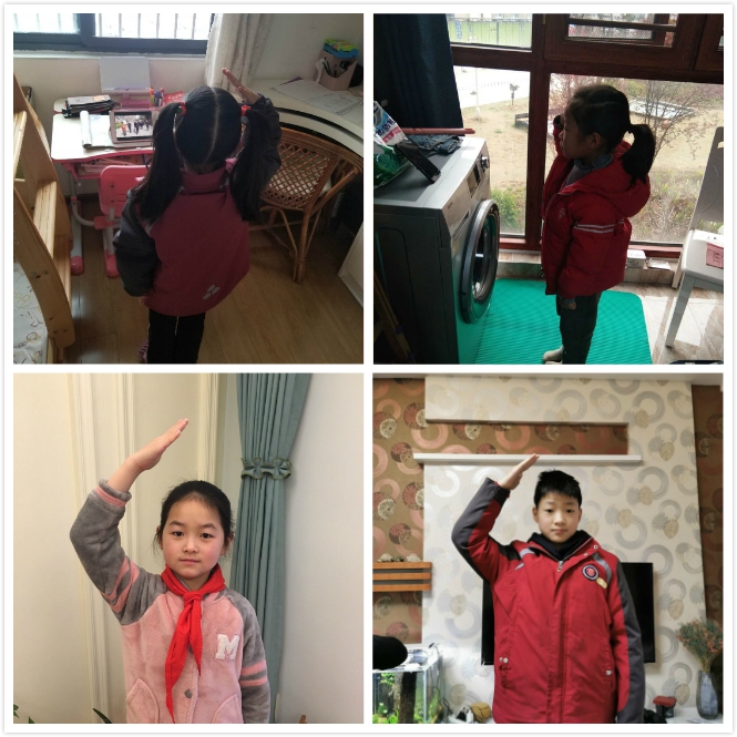 上午九点整,全体师生准时打开二维码,通过线上视频的方式举行升旗仪式,仪式由国小101班闫熙辰同学主持。师生家长们纷纷面朝屏幕肃立,虽然大家都是各自在家,但仪式感依然满满。