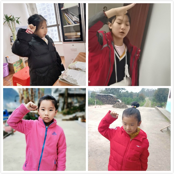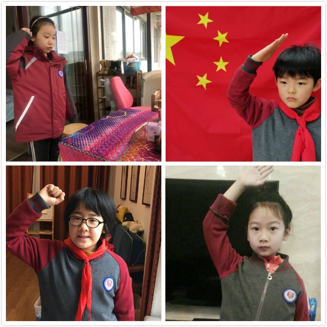 面向五星红旗,全体师生家长举起右拳一起庄严宣誓:爱祖国,敬生命;不出门,常洗手;线上学,勤锻炼;国有难,共奋战!