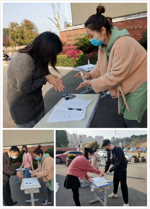 根据我校实际情况,各班主任提前通过微信群通知夷陵区家长分低、中、高三批错峰到校领取课本,并叮嘱家长:领取教材时不聚集,不交流并戴好口罩,全程做好防护,领完后迅速有序地离开。胡校长和老师们一直盯着大太阳守在校门口,给每位家长验码、消毒、分发教材,努力做好每个细节,整个过程既安全可行,又高效有序。