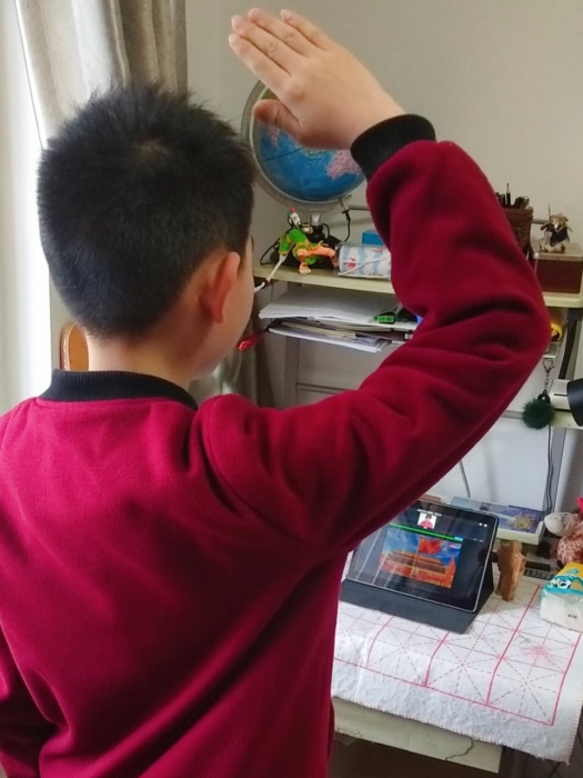 在庄严的升旗仪式中,会议拉开了帷幕。国歌响起,看着屏幕里冉冉升起的五星红旗,学子们在家中向国旗肃穆敬礼