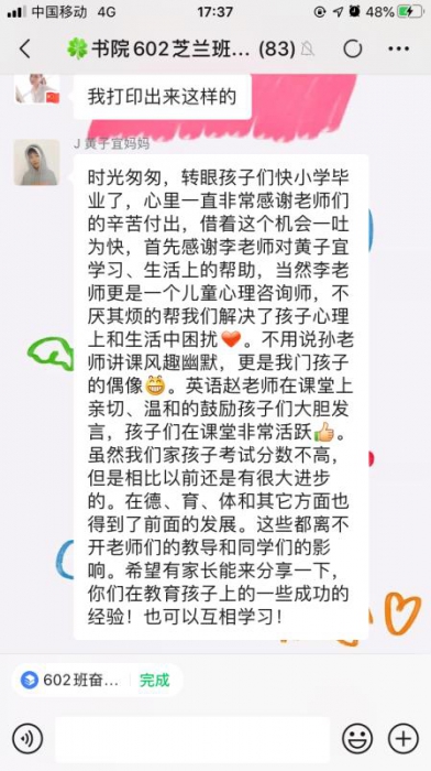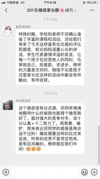 很多家长朋友纷纷在班级群内,留下自己的感恩与祝福。