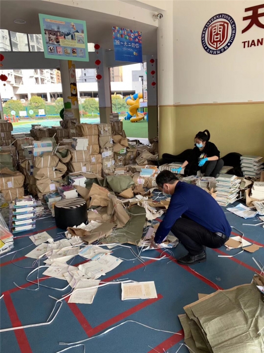 短短三天时间,从接收新华书店运送的教材,到综合组和体育组完成分书任务,再由班主任和送书教师团队协作,天问国初人在这个特殊的时候以高效、团结的工作精神服务天问国初的每一位学子,相信同学们在家学习的日子不会太久,愿收到新书的同学们能感受到老师们殷切的期盼,希望我们早日重逢在阳光明媚的校园里,在窗明几净的教室里再次响起书声琅琅!