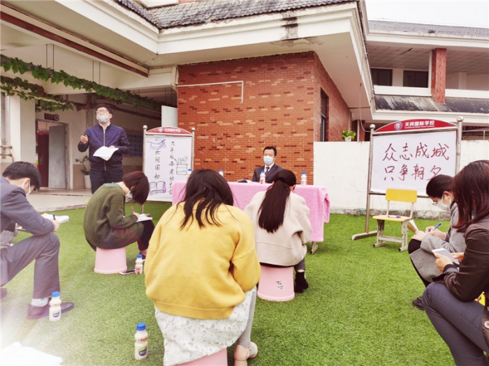 这个春天来得有点晚,可奋进者的心从不会迟到!在夷陵区教育局的要求下,夷陵天问国际初中全体九年级教师已于3月23日踏上了决战中考的岗位。为进一步推进九年级中考复习工作,明确后阶段复习方向,使九年级全体教师统一思想,以高昂的斗志、饱满的精神冲刺中考,夷陵天问国际初中九年级教师中考备考会于3月23日下午如期举行。