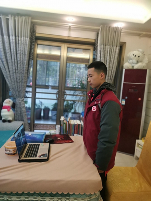 疫情线上云升旗,师生敬护旗下立。
