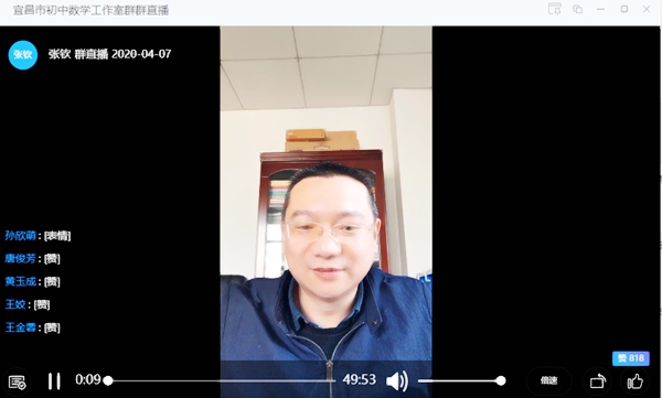 本网讯(通讯员 江海琴)2020年4月7日下午两点,高新天问初中全体数学教师通过网络平台参加宜昌市初中数学线上教学与中考复习研讨会。