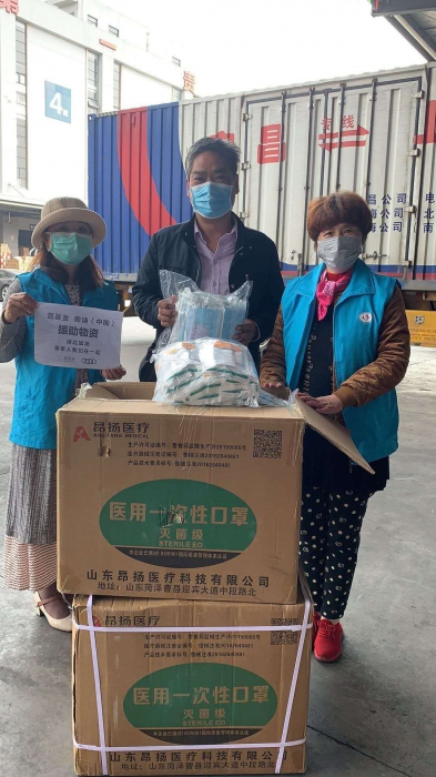 3月25日,天问高中306班陈自然同学的妈妈(陈文菊)向班级捐赠了一箱(1000个)口罩及体温检测仪;