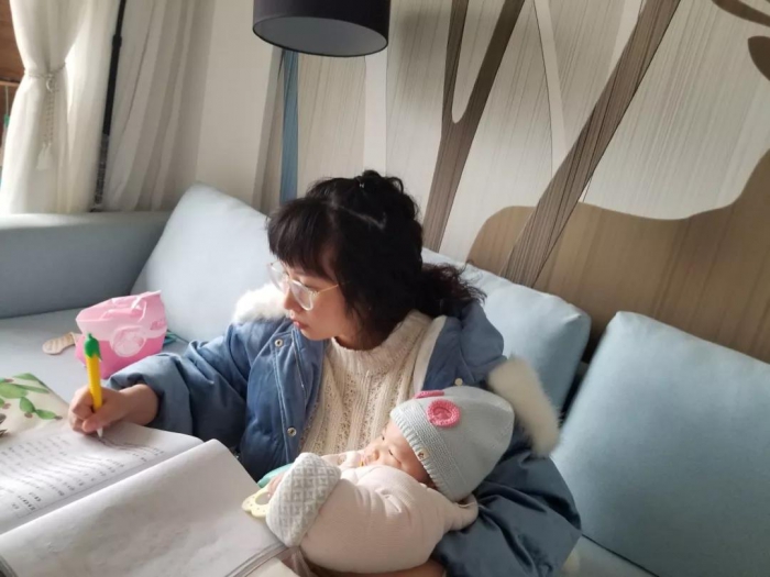 王晓玲老师是一名6个月大的宝妈,每天一边哄着孩子喂着奶,一边不停的学习进步,生怕落下了一点点内容。鲁梦月老师怀着七个月身孕,每天坚持线上一起学习。还有很多老师为了落实学习内容,全家一起来陪练……
