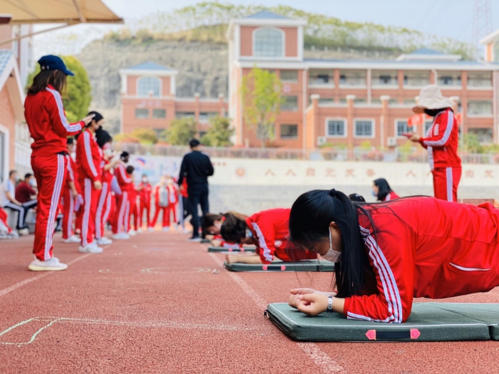 而学生和亲子的比赛则采用当日录制参赛视频,由家长上传至“家校本”平台,体育老师线上裁定,评出各年级单项奖和团体总分奖。个人项目包括一分钟跳短绳、一分钟拍篮球、30秒夹沙包跳、仰卧起坐、俯卧撑等。亲子项目有翻山越岭、爱的抱抱、快乐传递。