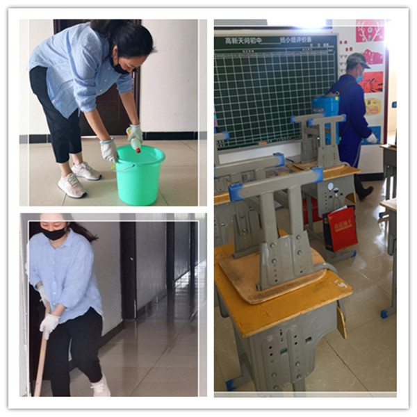 在疫情期间,高新天问校园从未停歇。3月22日起,我们的后勤工作人员天天给教室、寝室做清洁卫生,喷洒消毒液,不放过一粒灰尘,让病毒无处藏身。