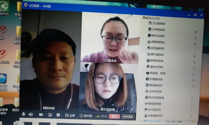 604班通过QQ视频沟通。首先让家长们了解到网上学习的优势和不足,以及对孩子们居家防疫学习家长们该如何应对。针对学生网上学习出现的若干问题,语数英三名教师分别为家长们答疑解惑,献计献策。最后,班主任对以后的网上学习提出了明确的要求。作为毕业班,孩子的身心健康和学习同样重要,家长们应帮助孩子通过体育锻炼、亲子阅读等方式调节,保持积极心态。