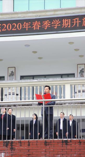 3月30日,星期一,受疫情影响,学生还不能返校。为培养学生爱国感恩之情,鼓舞士气,在这个特殊时期,宜昌天问书院校区举行了云直播升旗仪式。实时数据显示热度超过1.6万。