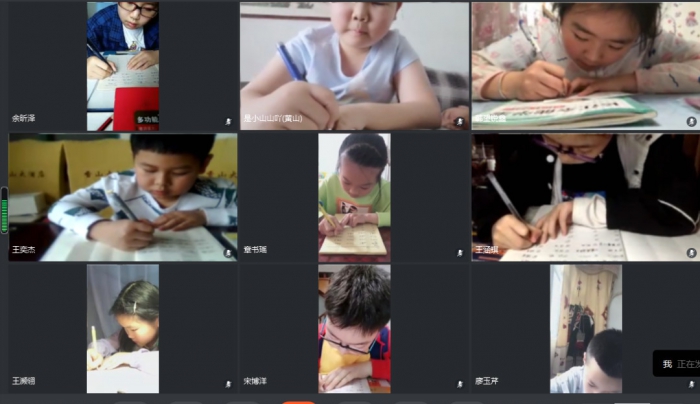 听写前,老师提醒学生打开视频,注意坐姿和握笔姿势,无论在哪里上课,都要养成良好的书写习惯。比赛过程中同学们严肃认真,都想在本次比赛中获得好成绩,看他们沉着冷静的样子,胜券在握啊!