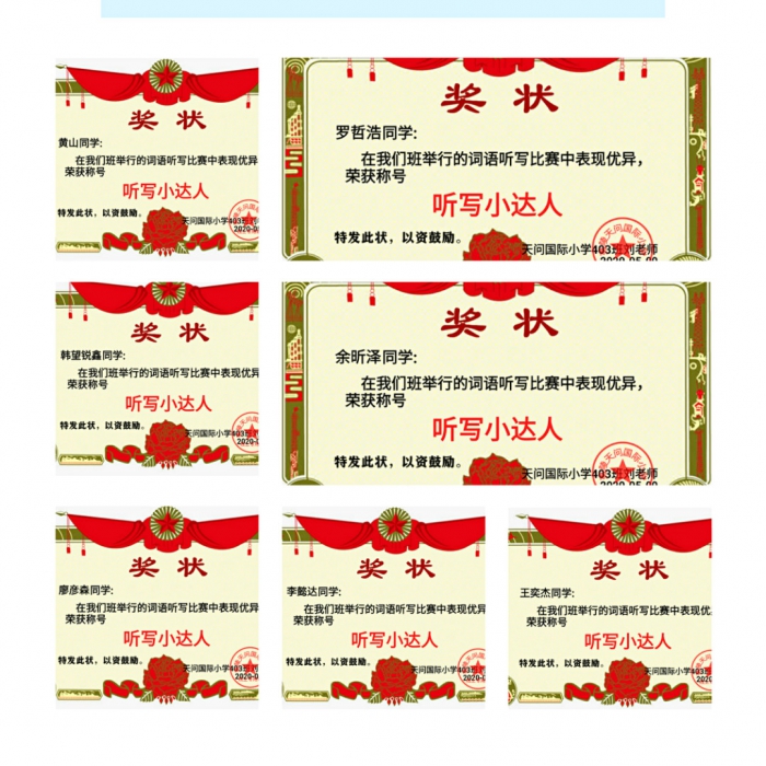 本次“词语听写大赛”的成功举办,丰富了学生的网络课程,更提高了同学们学习语文的热情。在疫情期间,希望每位同学能够珍惜宝贵的学习机会,及时总结,反复练习,争取下次取得更大的进步。