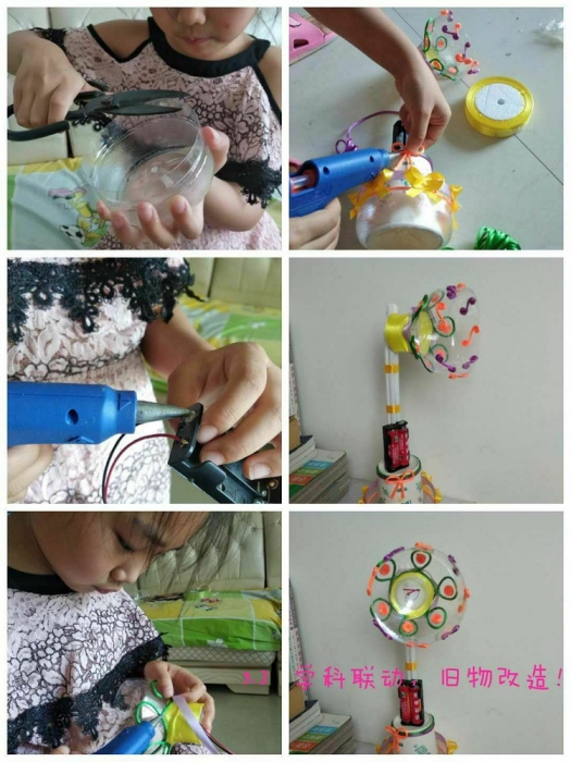 这个主题下的劳动是指“生产”劳动。通过思维与肢体融合学科内容,在旧物改造中让审美能力、动手能力、空间想象力得以发挥。基于孩子的年龄特点,低年级将活动与美术、品德课程相结合,用旧衣物、饮料瓶、鞋盒、废纸箱等进行再创作,有意识地收纳可回收垃圾变废为宝;中年级则与科学课程结合,利用塑料瓶创作机器人、火箭、汽车的模型,利用叶、壳、粒,用撕、剪、贴、粘、拼创作出各种作品;高年级则与语数课程相结合,《空间与图形》,“保护环境 珍惜生命”主题创作等。