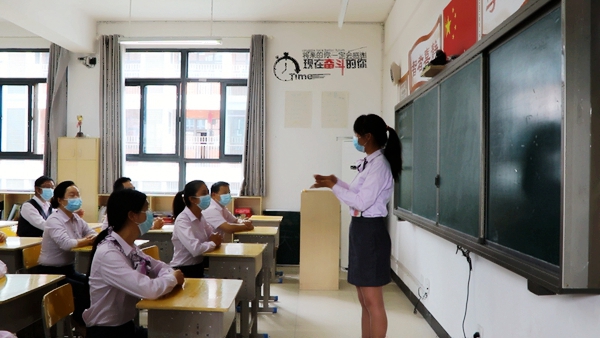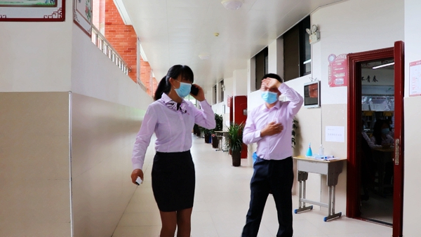 本网讯(通讯员 江海琴)2020年5月13日,高新天问初中为迎接5月18日九年级开学进行复学演练。参加演练除了校长、教务主任、政教主任、校班主任、各科室工作人员和九年级全体老师,高新天问小学副校长胡菲带领部分小学部老师亲情助演。