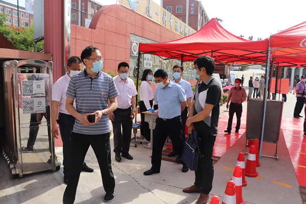 上午十点,高新区管委会和高新区教育局领导莅临我校,查看入学情况。并前往食堂和寝室检查准备工作。