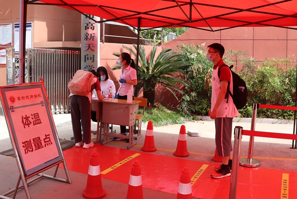 本网讯(通讯员 江海琴)2020年5月18日,这个可以载入史册的日子,也是老师、学生、家长期盼已久的日子终于来了,九年级开学啦!高新天问学校层层把关,为避免人员聚集,六个教学班249名学生分为上午和下午分批入校。