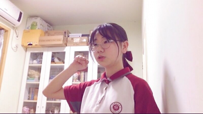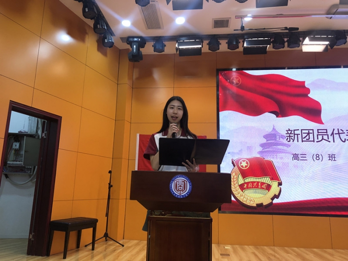新团员代表向安诗怡发言