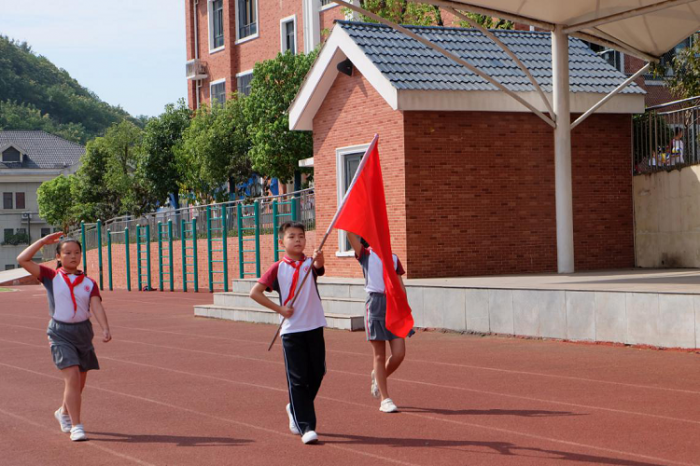 少先队员要热爱自己的队旗,在每当举行集会活动时,光荣的少先队旗手就会出旗,全体队员应严肃、立正并敬礼。