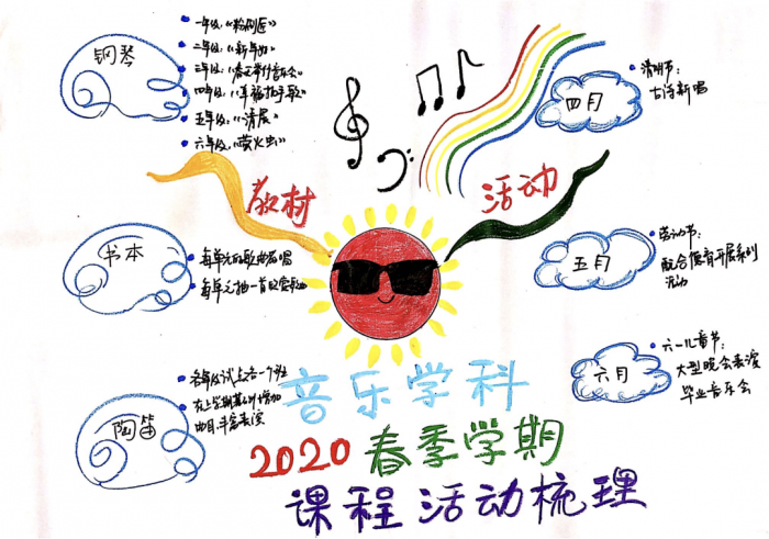 根据学生的不同年龄特点,各年级开展多种形式的音乐会。以上学期二年级新年音乐会为例,开学初音乐老师就和孩子们制定计划,并鼓励他们在平时的学习中积极展示。临近期末,孩子们就自主积极筹备、排练、审核节目、设计节目单,这些环节都由孩子们自主完成。在这个过程中真正体现了孩子们的自主性,孩子们在积极参与的过程中更加喜欢音乐。