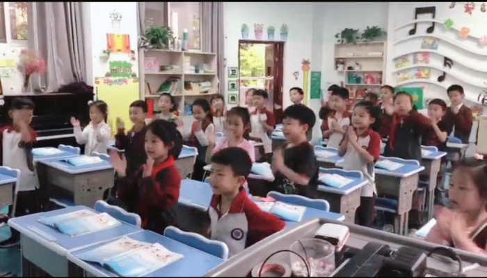 音乐兴趣和素养,不仅仅在单一的音乐课堂和活动中体现,还需要在生活和学习中运用与感受,音乐也将多学科整合。例如,我们联合语文组,将音乐与古诗相结合,开展“古诗新唱”,受到了孩子们的喜爱。这次疫情期间,音乐和古诗相配合的表演成了孩子们度过居家隔离期间的心情舒缓剂,让网课变得不再单一和枯燥。同时,国庆70周年《我和我的祖国》合唱快闪等活动的开展也激发了学生的音乐热情。
