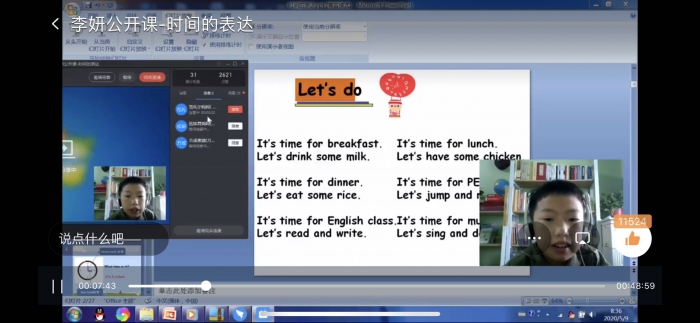 国小英语教研组有三位天问名师,阮允、田莉、章冰冰三位名师在本学期分别上了三节公开课,引领整个团队发展。三节线上公开课各有特色,给对网课还有困惑的老师们,起到了很好的示范作用。