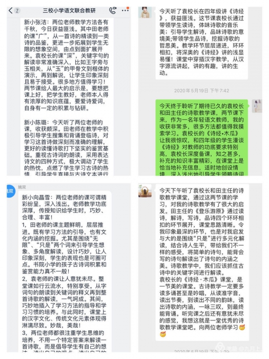 各校语文组老师从授课内容、教法、学法、学生能力的培养等方面,对三位老师的授课,发表了各自不同的看法。国小杨军老师、新小颜丽老师、书小陈紫喜老师代表全体教师评课议课,进行了归纳和总结。
