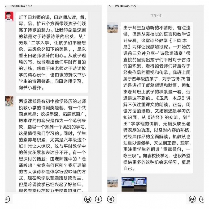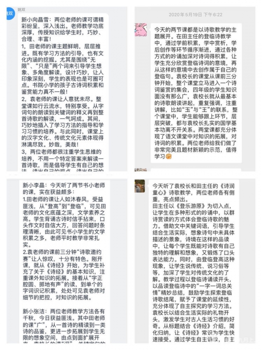 5月19日,书院小学田科蓉老师和袁霖淋老师在网加直播平台,分别讲授了《登临诗赏析》《诗经 木瓜》,教学过程层层深入,趣味深长,展现了书小学生丰富的文化积累,教师深厚的专业素养。
