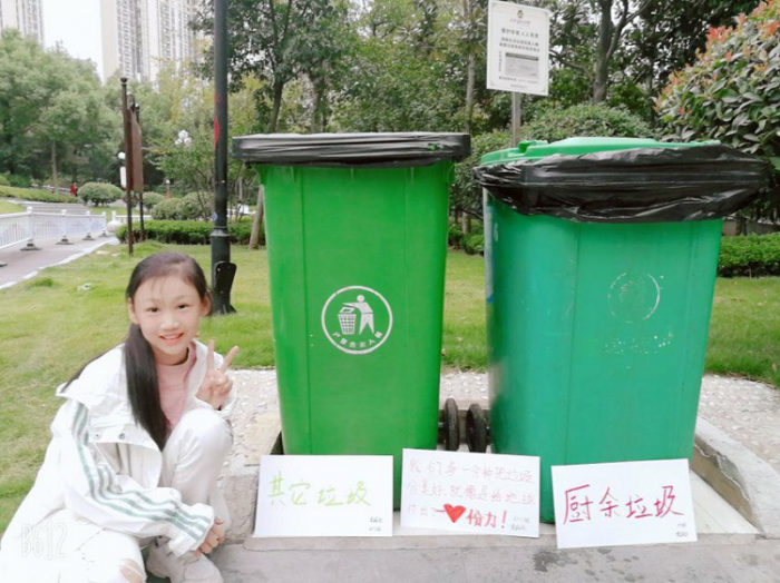少先队员们积极开展垃圾分类主题志愿服务活动,积极将垃圾分类教育向家庭、社会延伸。