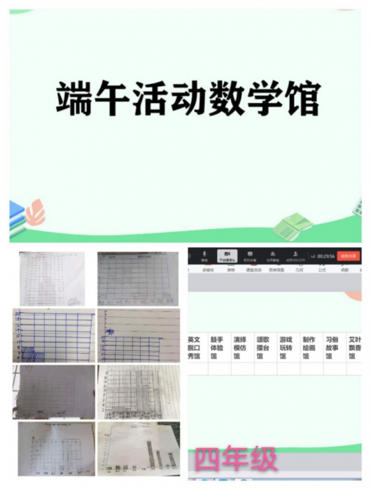 根据各年级孩子们的年段特征将端午文化和数学知识相结合,进行图形认识、分类学习,将端午相关的数学知识进行整理、归纳、做成数学小报来感知手中的粽子,体验身边的数学。