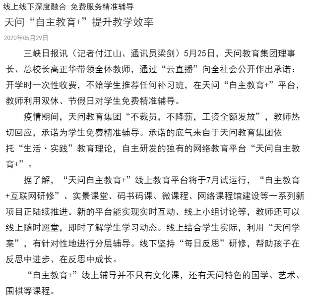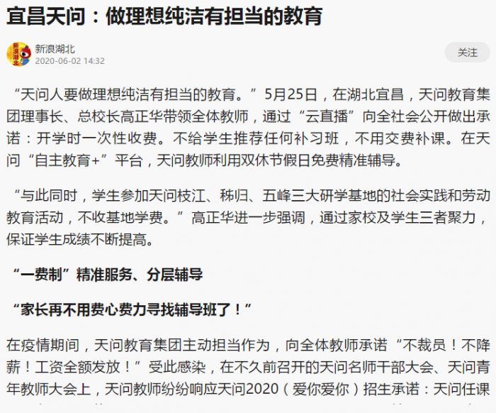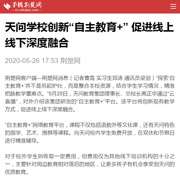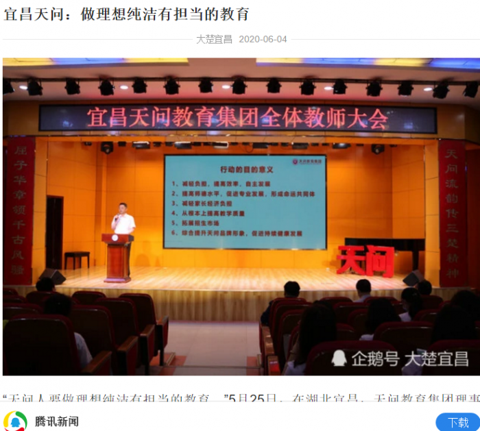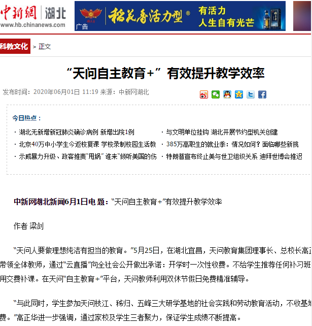 等中省媒体陆续聚焦天问教育集团《宜昌天问:做理想纯洁有担当的教育”》