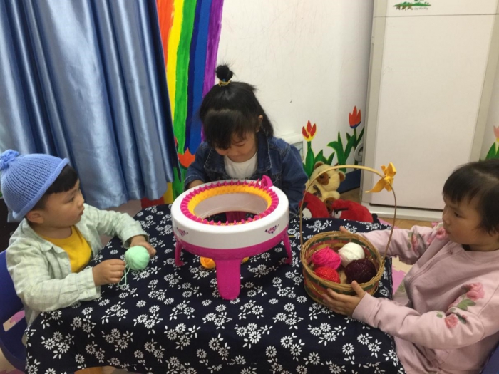 2、根据幼儿年龄特点,小班区角创设以趣味性和工具类为主,主要是毛线机的使用,大量投放各种毛线及小件装饰品,中班在此基础上增加辅助工具,以生活中常见的物品为主:木棍、纸板、手工编织架的制作,在此之外,开始投放其他类型的编织材料:绸带、橡皮筋、吸管等。大班以技能拓展为主,材料更加多元化,除了学习宜昌本土“土家精细竹编技艺”之外,区角也渗透到其他领域:如和自然区、益智区、生活区等。