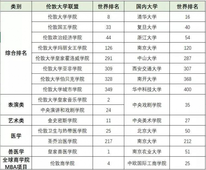 伦敦大学联盟VS中国大学