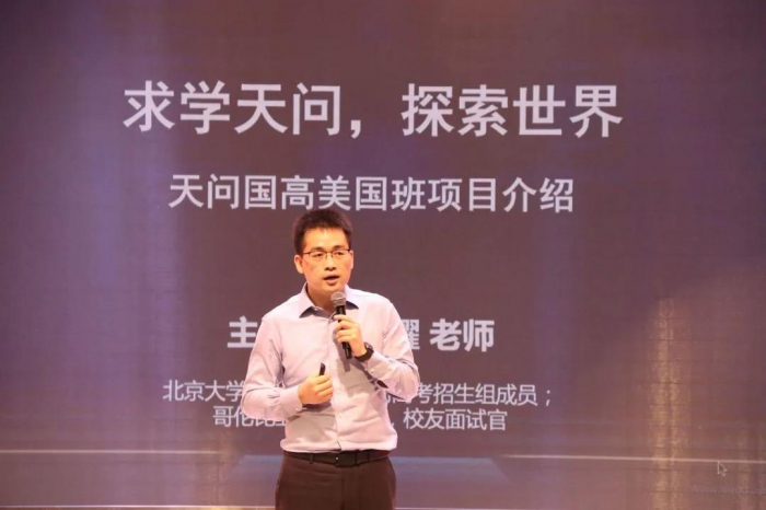 天问国际高中为2020届新生设置了三种不同的班型—— 美国班 伦大班 港澳直通班 活动现场,国际教育专家、北京大学学士、硕士、哥伦比亚大学MBA赵耀老师详细解读了留学美国的优势,以及天问国高美国班的特点。