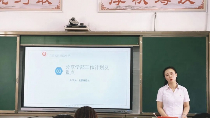 8月18日下午,书小召开了全校教职工会议。会议伊始,袁霖淋校长向全体教师解读了2020——2021年度天问书院小学学年工作计划,确定了“综合质量提升年”学年主题,明确战略目标,分解战略任务,全面部署了本学期主要工作。