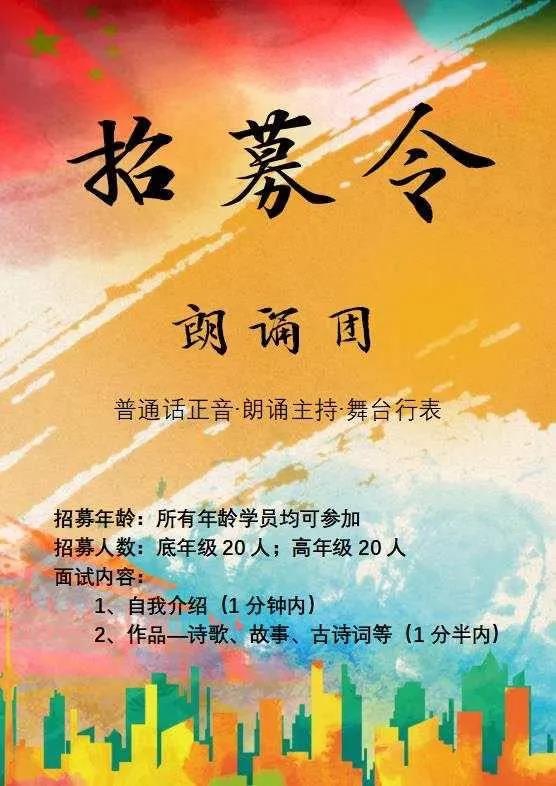 特邀宜昌市朗诵艺术家协会副主席兼秘书长陈玲老师进行授课,朗朗读书声,必将是书小最亮丽的风景线!现招募40个学员,低段20个,高段20个,欢迎少年们踊跃报名参加海选!海选过关,名师授课,不可错过!