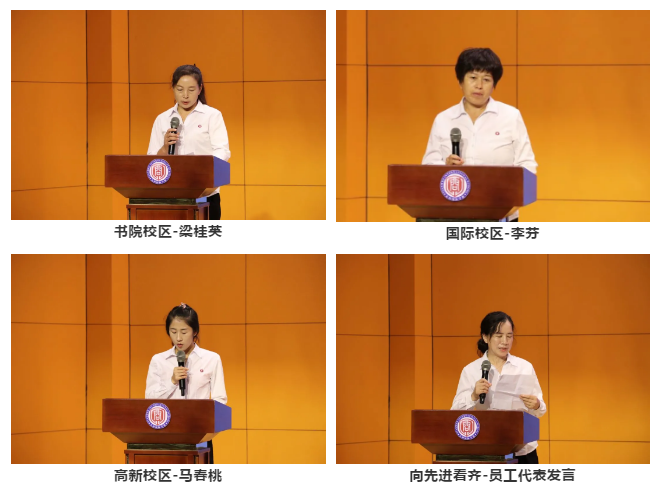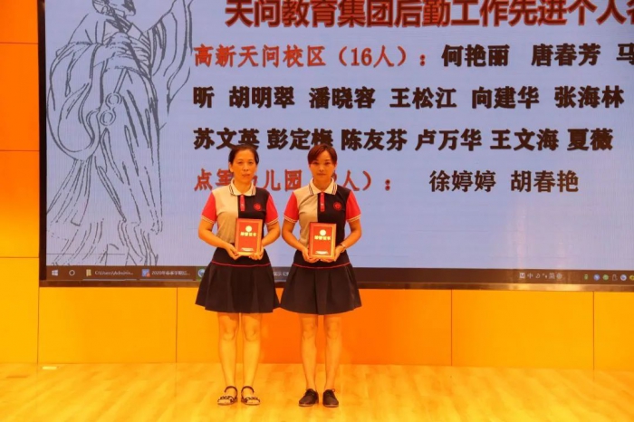 后勤工作先进个人分享环节,作为天问后勤部一名普通的职工,她们表示将把获奖的喜悦转化为强大的工作动力,除了照顾好孩子们的衣食住行外,还要担任起以身作则的德育指导工作,做敬业爱岗、尽职尽责的优秀天问人。要有爱心、善于学习、和老师们紧密配合、和孩子们及家长做朋友。