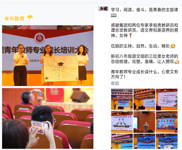 他说教师的专业发展也有三堂必修课:在研究上要抢占理论制高点,结合自己的困惑特长做有目的有针对性的研究。读书在多和精的基础上,要挑战专业阅读难度和深度。要善于捕捉思维闪光点,拥有正向、逆向和多元思维方式。要替人寻找工作着力点,找到自我成长的着力点,找到学科发展的核心点。还要学会如何进行科研。这些都是李老师多年教研工作的结晶,对于青年教师都是宝贵的建议,给大家成长指明了方向。