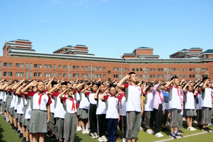 9月18日,夷陵天问国际初中举行了“铭记九一八 青春当自强”主题教育活动。在张欢老师的带领下,全体师生共同回顾了那段刻骨铭心的历史,702班同学们带来诗歌朗诵《勿忘九一八》,全体同学高唱国歌《义勇军进行曲》后,举起右拳,庄严宣誓:牢记历史,珍爱和平!勿忘国耻,圆梦中华!表达了自强不息、勇担责任、报效祖国的愿望和决心。
