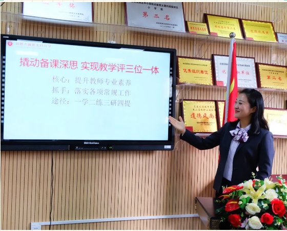 高新区教研中心主任兼数学教研员李红梅老师和高新区语文教研员陈花蓉老师称赞:这是一个阳光积极的队伍,新小工作有规划,实施有策略,坚持有成效。